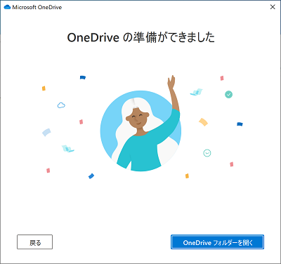 以下の画面で「OneDriveフォルダーを開く」をクリックすると、仮想ドライブ上でOneDriveが利用可能となります。